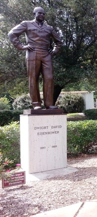 If you want to see a bigger-than-life-John Wayne memorial, visit the site of his birthplace in Denison, Texas. He was the first Texas-born president. The north Texas town of Denison takes pride in that fact and maintains his place of birth even today as a historical site complete with a life-size statue of him in military uniform on the grounds. Eisenhower’s father had come from Kansas to Texas to work for the railroad, but he moved his family back to Kansas when the future president was only eighteen months old.