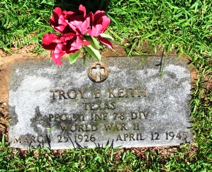 Troy Elijah Keith was killed in Voilersheim, Germany at 19 years old. He was my first cousin on my father’s side of the family. His mother died a few days after he was born. I was too young to have remembered seeing him, but I do remember being there with my family when his body was brought back from Europe after the war. His body arrived on a train and was given a military burial at Cleveland Memorial Cemetery in Cleveland, Texas, a small town north of Houston. I have not been able to find a photograph of him.